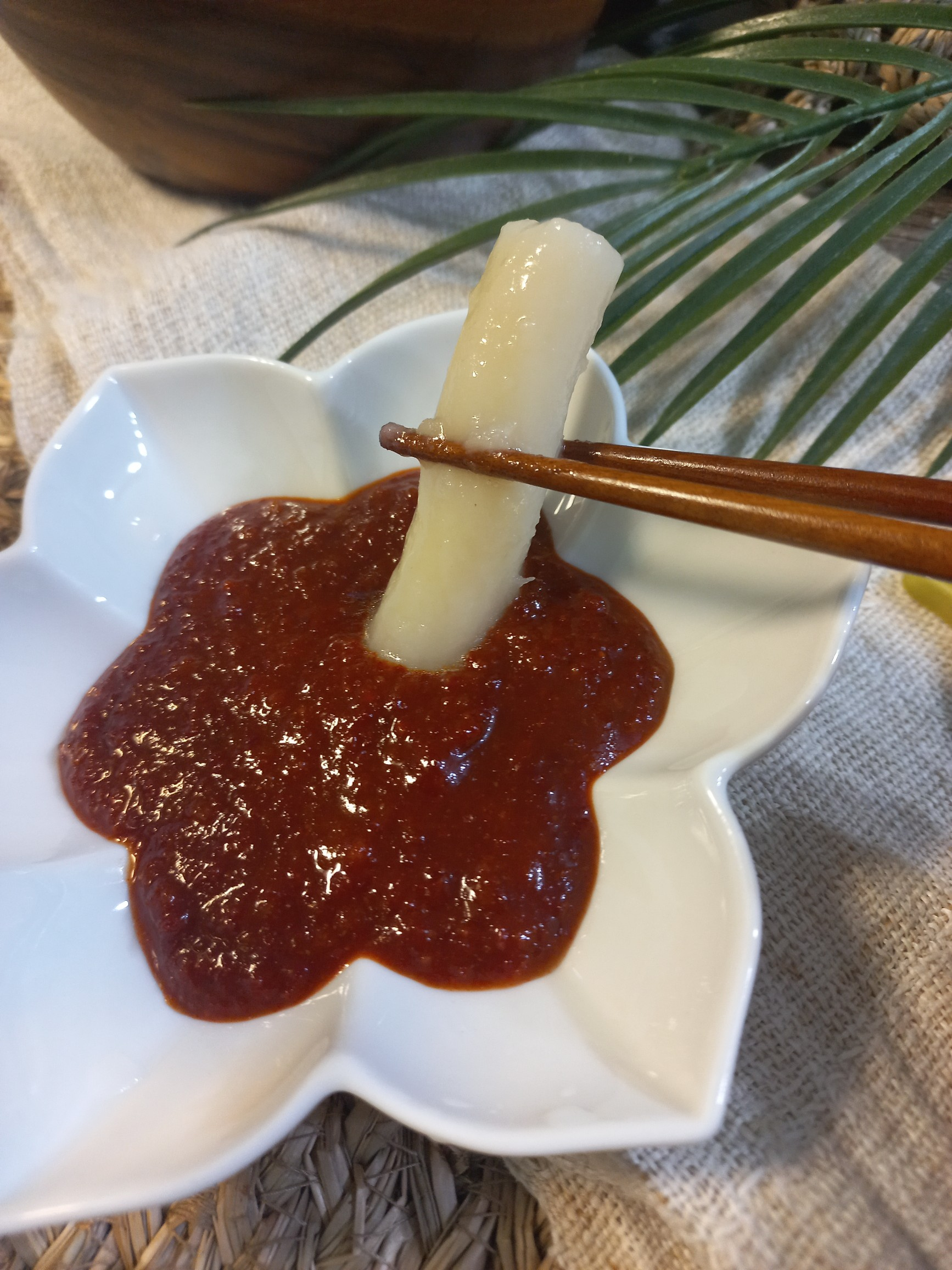 Setelah gochugaru dan kaldu tercampur, biarkan campuran tersebut selama kurang lebih 5 menit. Ini memungkinkan gochugaru menyerap kaldu sepenuhnya, menghasilkan saus dengan rasa yang jauh lebih halus dan mendalam.