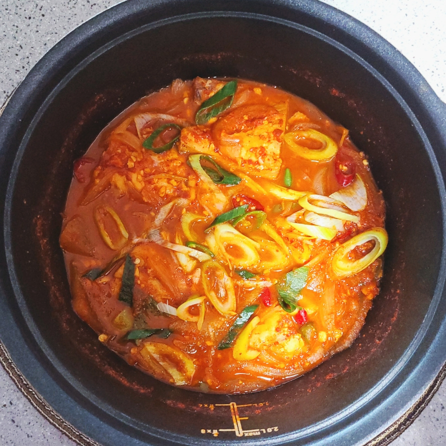 Saat bingung menentukan menu utama dan kehabisan bahan segar, saya memutuskan untuk membuat semur ikan kembung dengan lobak yang pedas dan kaya rasa, menggunakan ikan kembung beku yang sudah diolah dan sisa lobak. Saus untuk semur ini dibuat sangat mirip dengan saus semur ikan pada umumnya. Hidangan ini pasti akan menjadi favorit yang disantap dengan nasi! (Takaran sendok makan menggunakan sendok nasi khas Korea)