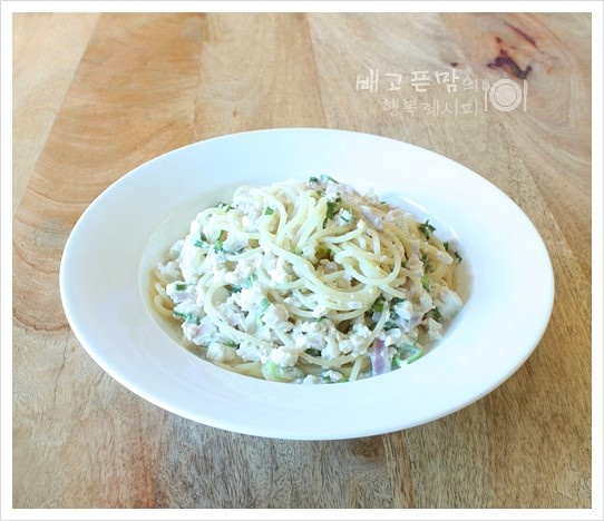 Ini adalah spaghetti tahu yang dibuat dengan cara menghaluskan dan menumis tahu tanpa daging. Ini adalah versi spaghetti krim yang lebih ringan, menawarkan sensasi yang menyegarkan. Cobalah menyendok saus dan mie bersamaan untuk gigitan yang lezat dan memuaskan.