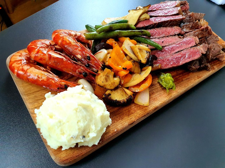 Setelah matang, biarkan steak beristirahat selama sekitar 5 menit sebelum diiris. Ini memungkinkan sari daging merata ke seluruh bagian daging, memastikan hasil yang lembut dan juicy. Iris steak sesuai ketebalan yang Anda inginkan dan sajikan di piring bersama kentang tumbuk dan sayuran tumis.