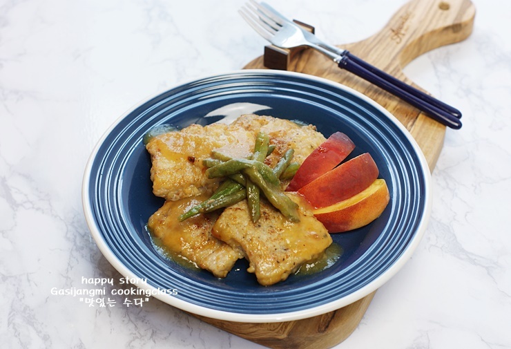 Ini adalah hidangan steik daging babi istimewa yang menampilkan persik kuning musiman yang manis dan harum, menggabungkan kelembutan daging lulur babi dengan kesegaran buah yang menyenangkan. Ini adalah menu yang sempurna untuk menjamu tamu atau untuk acara spesial, membawa suasana restoran yang canggih langsung ke rumah Anda.