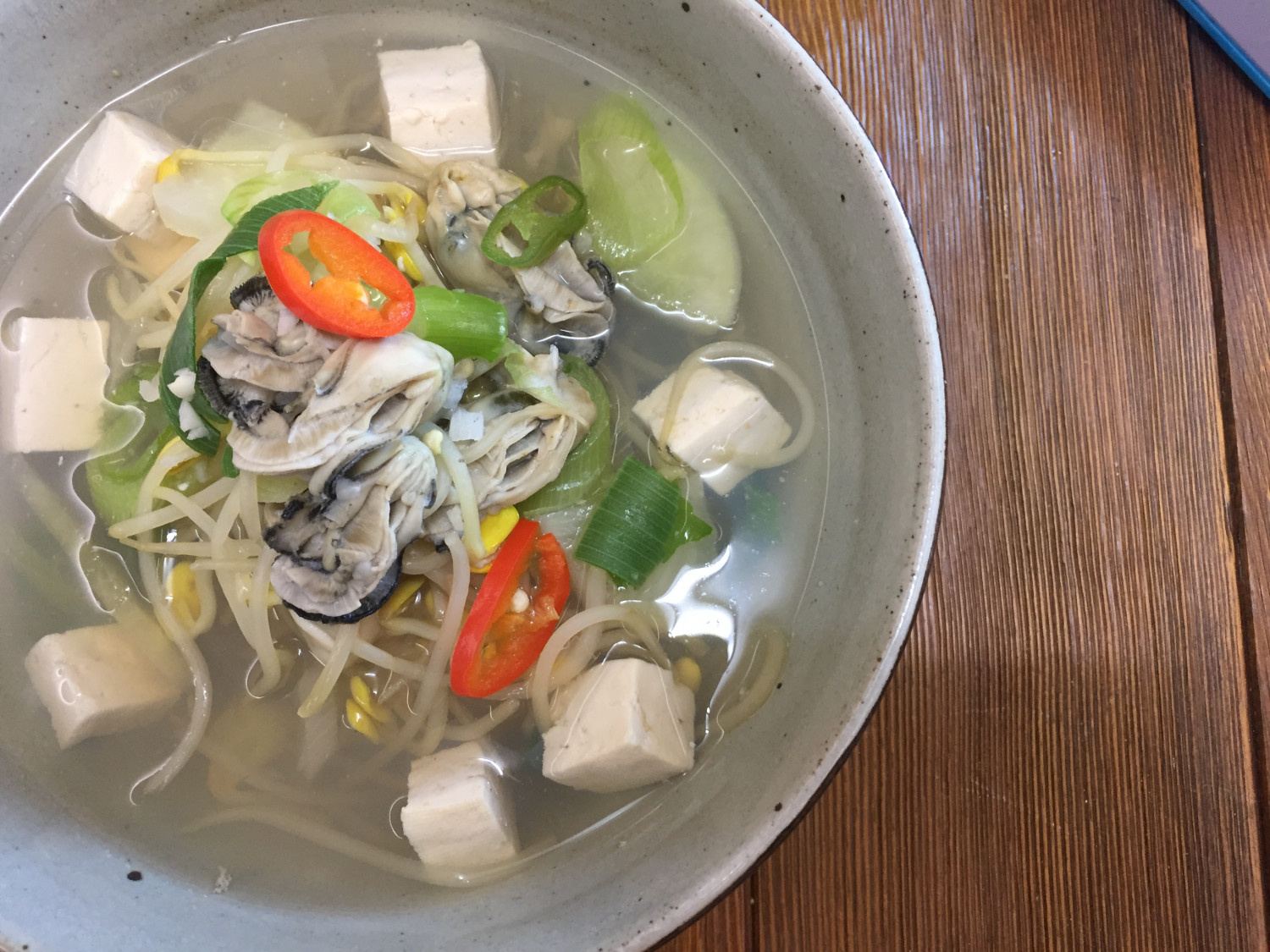 Sup ini terinspirasi dari rekomendasi bahwa tiram bermanfaat untuk mimisan, yang menjadi perhatian putri saya yang lebih muda. Saya menyiapkannya dengan rasa yang ringan dan lembut. Tiram kaya akan nutrisi, jadi ini adalah waktu yang tepat untuk menikmatinya selagi musimnya. Kuah bening dan menenangkan ini sangat menyegarkan.