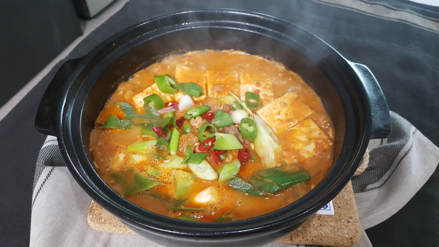 Sup Cheonggukjang Gurih dengan Daging Sapi dan Kimchi Tua
