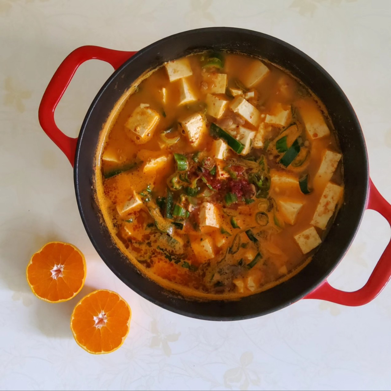 Bingung mau makan apa di akhir pekan? Kami persembahkan sup Cheonggukjang yang menghangatkan hati, dibuat dengan mencairkan sebungkus pasta kedelai dari freezer dan menambahkan tahu secara royal. Ini adalah hidangan yang pasti akan memuaskan!