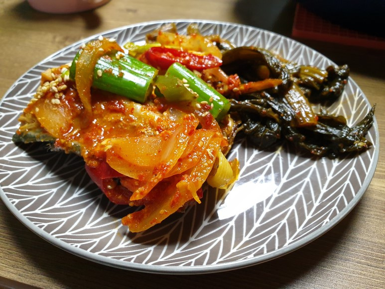 Apakah Anda masih punya kimchi lobak (Gat Kimchi) buatan sendiri yang lezat dari tahun lalu? Jika ya, resep sup ikan kembung spesial ini cocok untuk Anda! Rasa pedas dan mendalam dari Gat Kimchi berpadu sempurna dengan kekayaan ikan kembung, menciptakan hidangan fantastis yang akan membuat Anda menghabiskan sepiring nasi dalam sekejap. Kimchi tua yang asam dan pedas meresapi ikan kembung, membuatnya lembut dan lembap tanpa bau amis, rasa yang akan disukai semua orang. Buat hidangan ini untuk acara spesial atau untuk menambahkan cita rasa mendalam pada makanan sehari-hari!