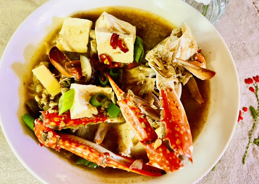 Sup Kepiting Miso Kaya Rasa dengan Kepiting Musiman