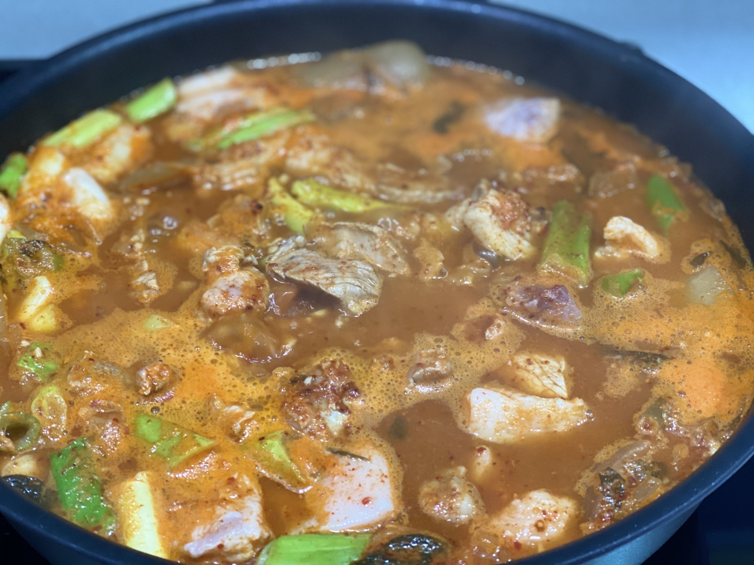 Masak sup dengan api kecil selama kurang lebih 20 menit, atau sampai semua bahan matang sempurna dan kuah mengental. Air rendaman kkakdugi memberikan rasa yang dalam, pedas, namun sedikit manis pada sup kimchi babi ini. Dengan daging babi yang melimpah, ini adalah hidangan yang mengenyangkan dan seimbang yang akan membuat Anda ingin menambah nasi lagi!