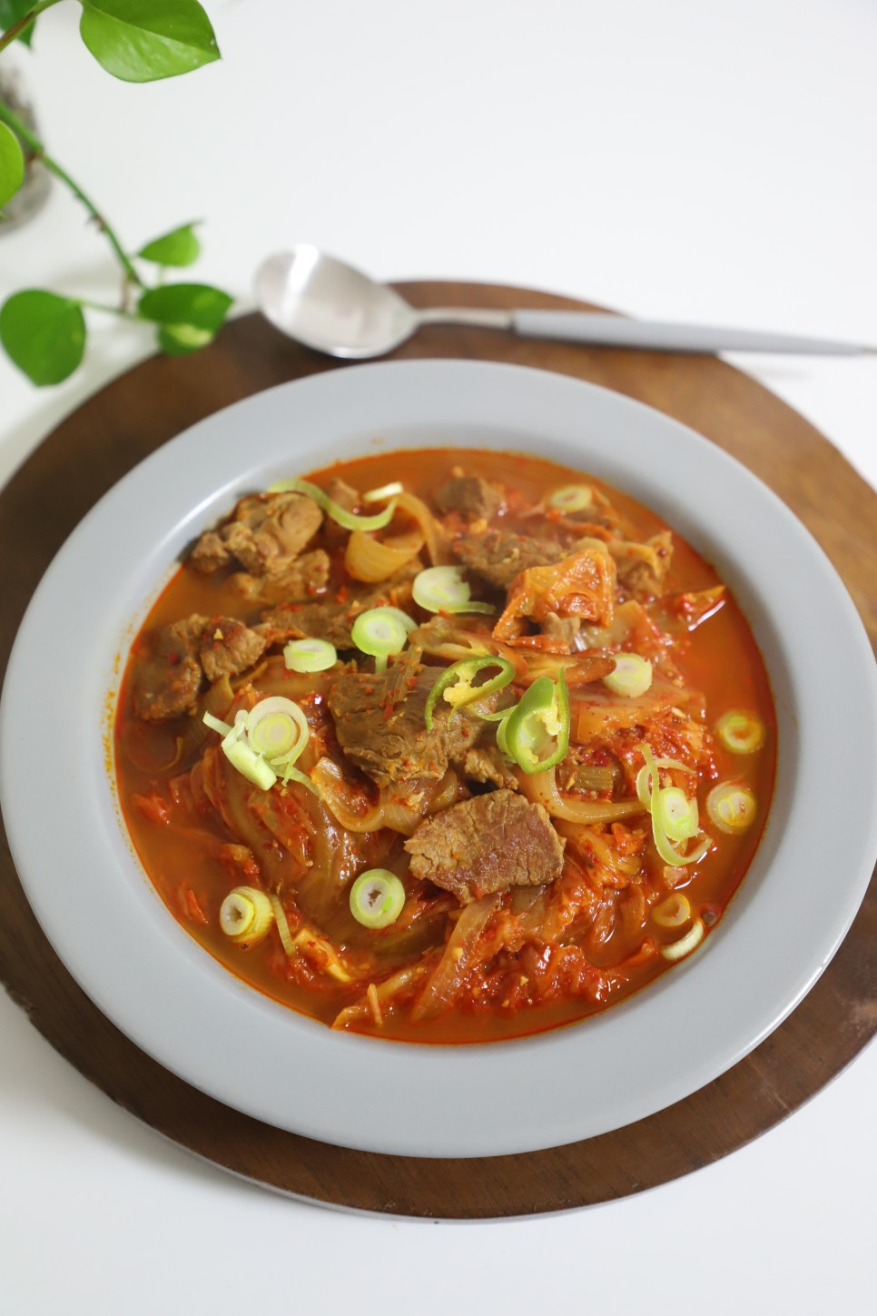 Dan inilah semangkuk Sup Kimchi yang sempurna! Sup ini sangat memuaskan sehingga Anda tidak memerlukan lauk lain untuk makan kenyang. Jika Anda menyukai rasa pedas, tambahkan beberapa cabai Cheongyang cincang untuk tendangan pedas yang lebih kuat. Jumlah daging babi dan kimchi yang melimpah membuatnya sangat mengenyangkan dan sesuai selera saya. Ini adalah lauk yang fantastis untuk nasi, dan juga sangat cocok dinikmati bersama minuman. Nikmati Sup Kimchi lezat seumur hidup Anda dengan resep ini!