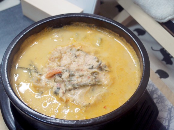 Dalam panci atau panci tanah liat, masukkan kongbiji. Tuangkan 600ml kaldu dan aduk dengan sendok untuk memecah gumpalan, menciptakan campuran yang halus. Menggunakan air beras akan menambah tekstur yang lebih gurih dan lembut.
