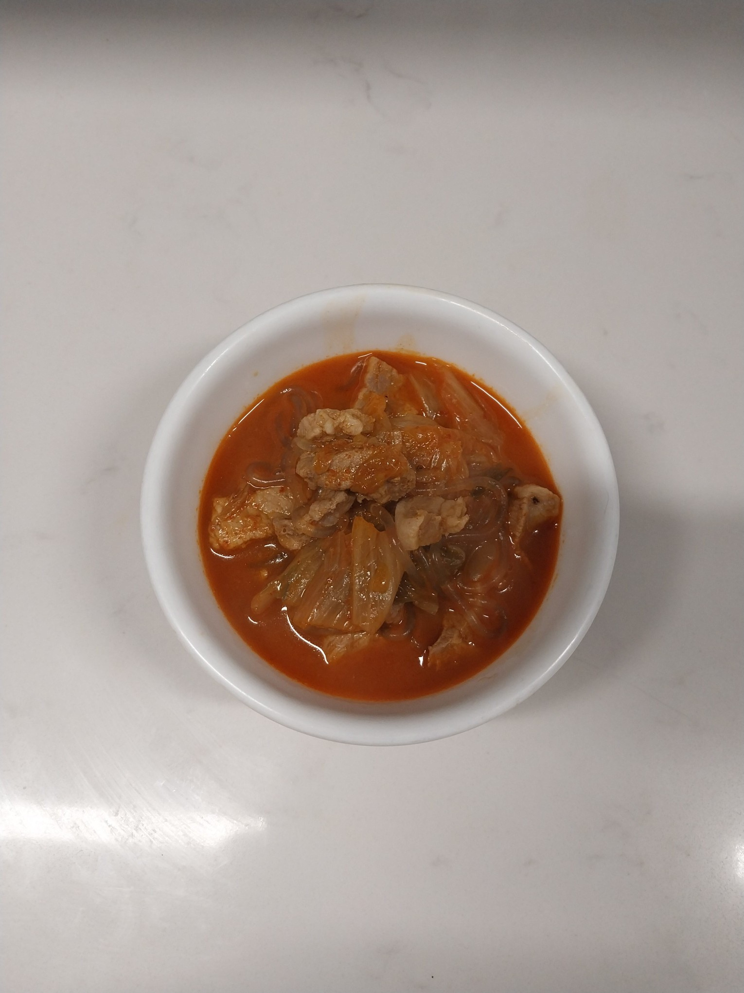 Sup Kimchi Leher Babi Anda yang lezat siap disajikan! Sajikan dengan melimpah di atas semangkuk nasi panas dan nikmati. Anda pasti akan menambah sepiring nasi lagi!
