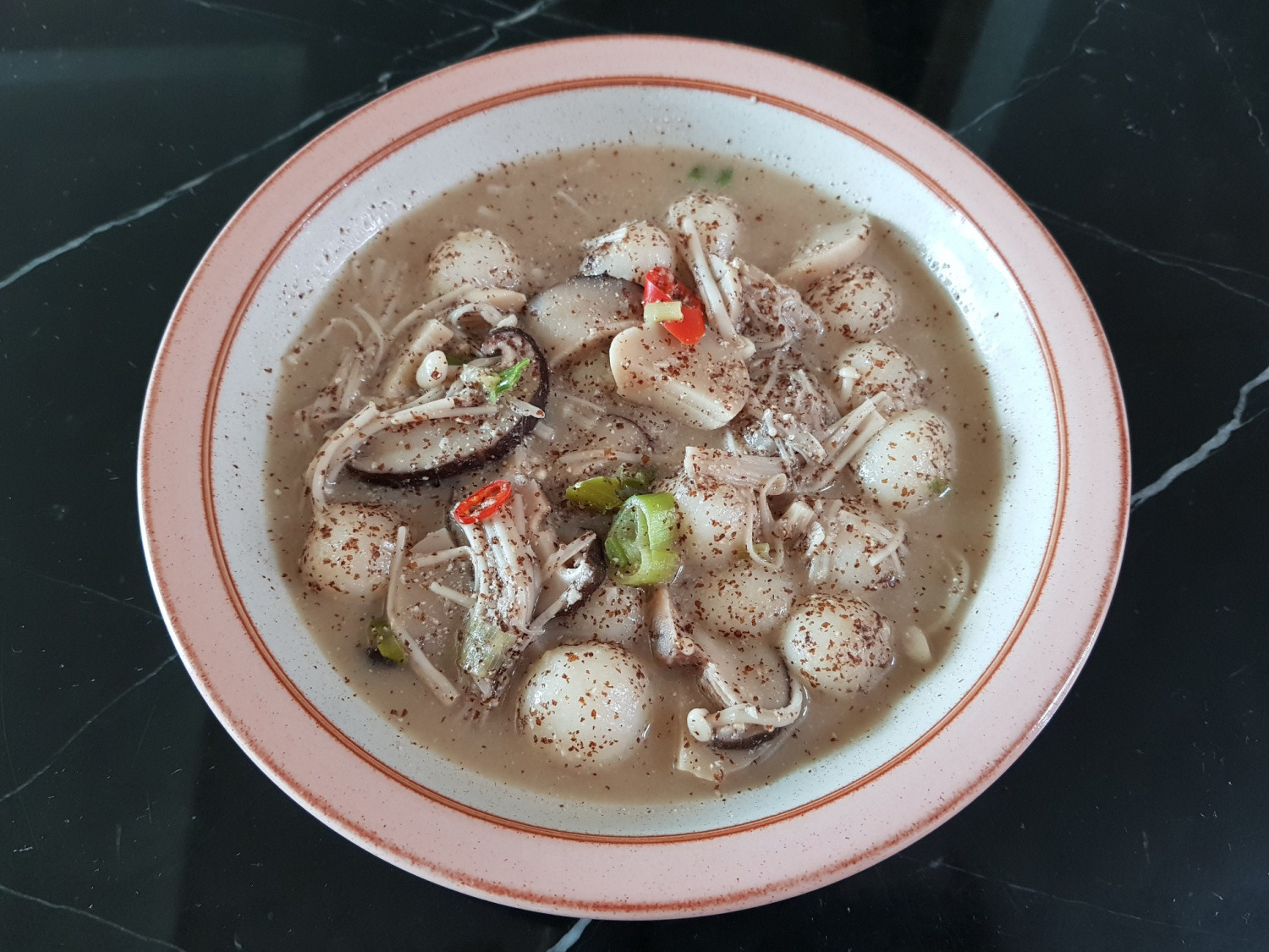 Sup Krim Jamur Wijen dengan Bola-Bola Ketan Buatan Sendiri (Tepung Beras Ketan Basah)