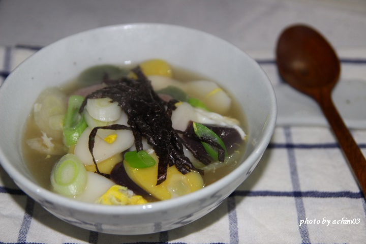 Setelah kue beras matang dan mengapung di permukaan, bumbui sup dengan 1.5 sendok makan kecap asin Korea (guk-ganjang). Tambahkan daun bawang yang sudah diiris, lalu tuangkan perlahan telur kocok sambil membentuk lingkaran. Setelah menambahkan telur, jangan langsung diaduk. Biarkan telur matang perlahan hingga membentuk gumpalan lembut sebelum diaduk ringan untuk menyelesaikan. Sup kue beras lima warna Anda yang indah dan penuh warna sudah siap!