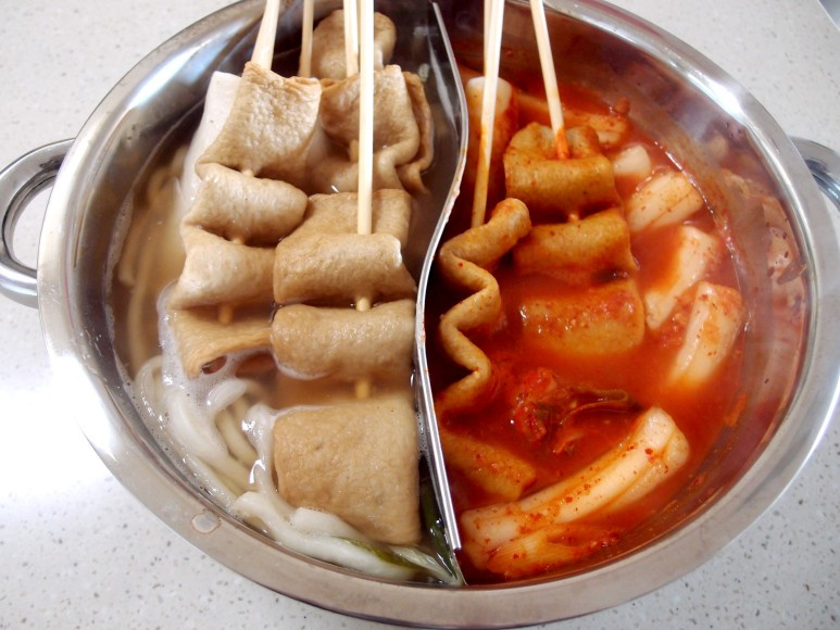 Setelah kaldu di kedua panci mendidih dengan kuat, masukkan dengan hati-hati odeng sate dan tteok sate ke dalam panci masing-masing. Didihkan kembali, lalu kecilkan api menjadi sedang-rendah dan biarkan mendidih perlahan. Proses perebusan ini memungkinkan rasa meresap dalam ke dalam odeng dan tteok, serta mengeluarkan kelezatan dari bahan-bahan itu sendiri, menghasilkan kaldu yang lebih kaya.