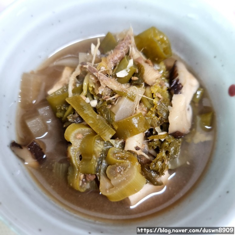 Setelah dididihkan sebentar lagi dan bawang bombay serta lobak menjadi bening, tambahkan 3 cabai Cheongyang yang dicincang halus dan 1/2 batang daun bawang yang diiris miring. Ini akan memberikan rasa pedas dan aroma segar. Menambahkan bahan-bahan ini menjelang akhir membantu menjaga aroma segarnya.