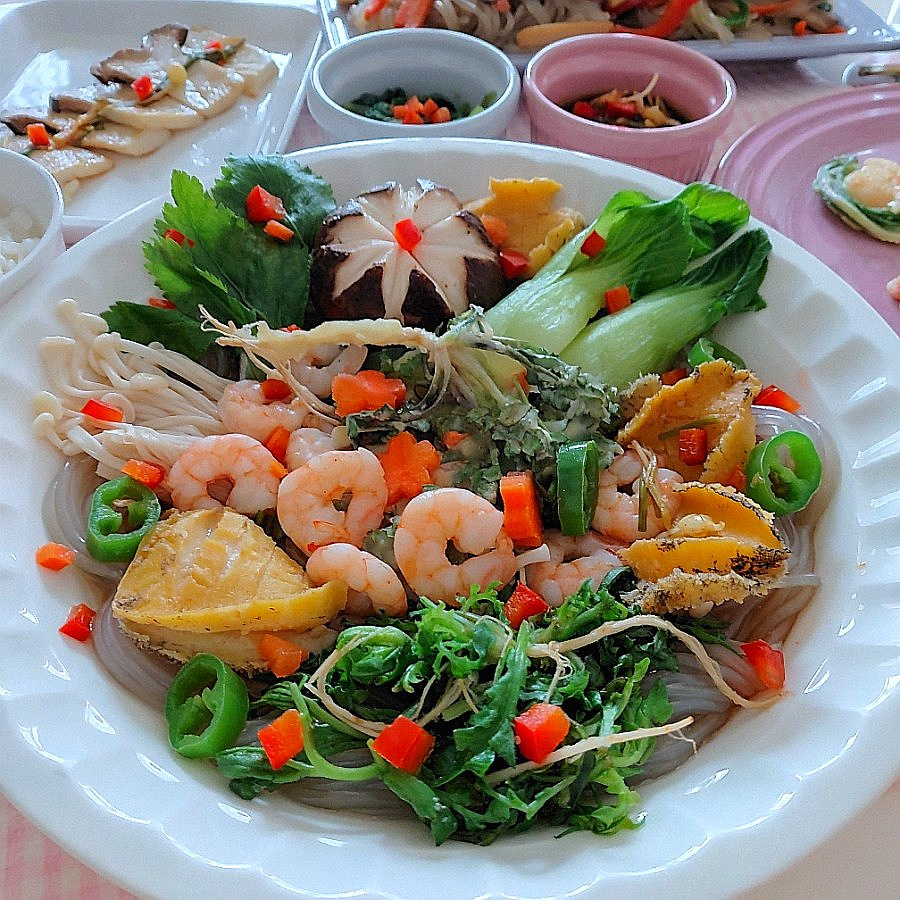 Kuah bening dan menyegarkan yang berpadu dengan aroma makanan laut dan sayuran musim semi sungguh nikmat. Menikmati bihun kenyal dan makanan laut empuk adalah pengalaman yang sungguh luar biasa.