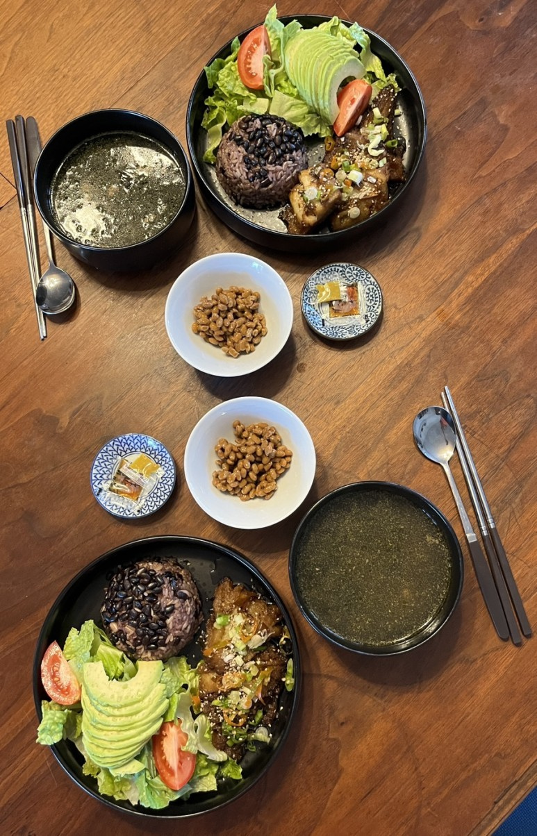 Ini adalah sup rumput laut yang sederhana dan lezat yang dapat Anda nikmati kapan saja, tidak hanya saat ulang tahun. Hidangan ini cocok untuk makan siang yang sehat dan memuaskan. Bayangkan sepiring sup rumput laut hangat, nasi merah, ikan kod panggang dengan kecap, salad alpukat segar, dan seporsi natto bernutrisi. Daging sapi yang empuk dan kaldu kaya dari miyeokguk ini selalu menenangkan dan sangat lezat.