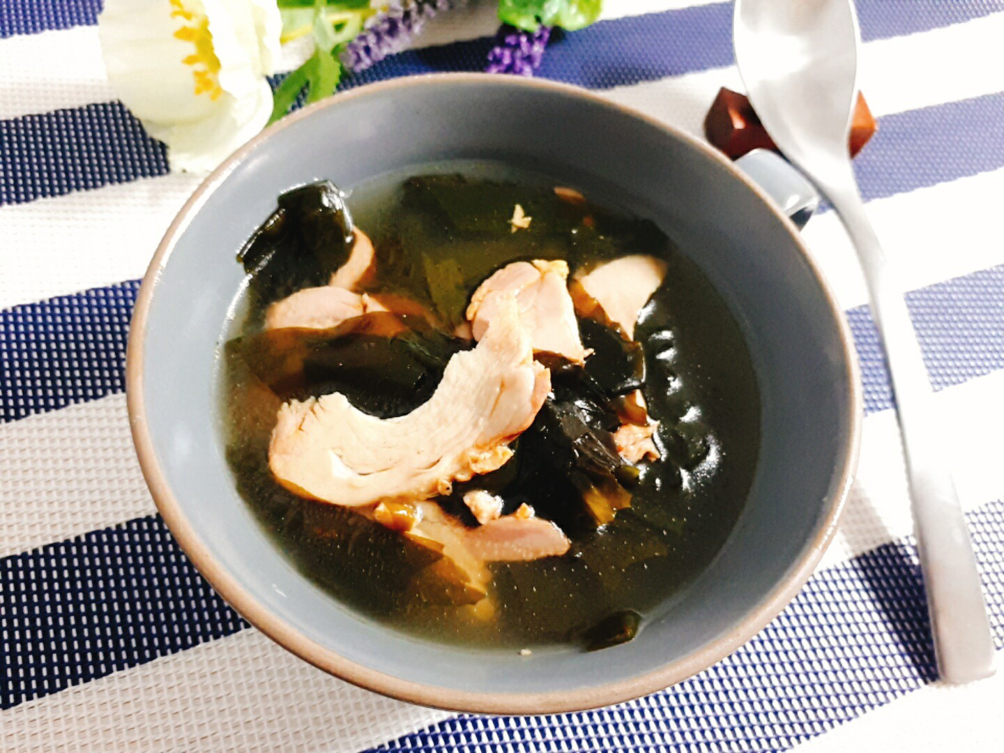 Sup rumput laut yang diperkaya dengan rasa gurih dada ayam asap.