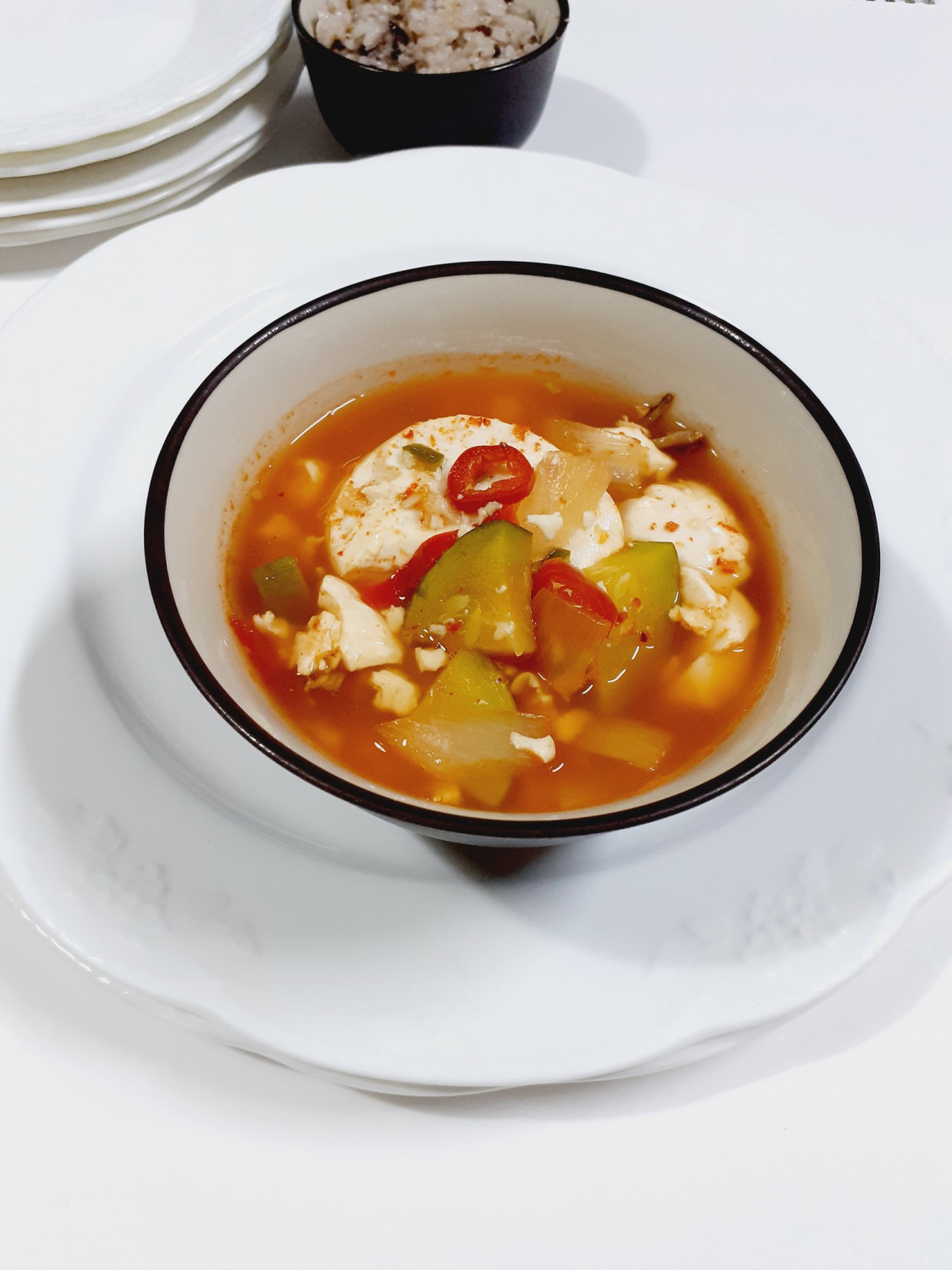 Sup tahu sutra Korea (Sundubu Jjigae) yang sederhana namun sangat beraroma. Sup pedas dan hangat ini memiliki tekstur tahu sutra yang sangat lembut, diseimbangkan dengan sayuran segar yang renyah. Ini adalah hidangan lezat yang nyaman dan memuaskan. Nikmati cita rasa otentik yang mudah dibuat ini di rumah!