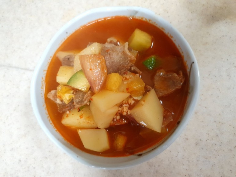 Inilah ‘Sup Zucchini Gochujang’ ajaib yang membuat semangkuk nasi lenyap seketika saat dicampur dengan nasi panas. Sup ini memiliki profil rasa yang fantastis di mana kekayaan rasa daging babi, manisnya zucchini dan kentang, serta pedasnya gochujang berpadu secara harmonis. Sangat cocok untuk memperkaya hidangan sehari-hari Anda, bukan hanya acara spesial.