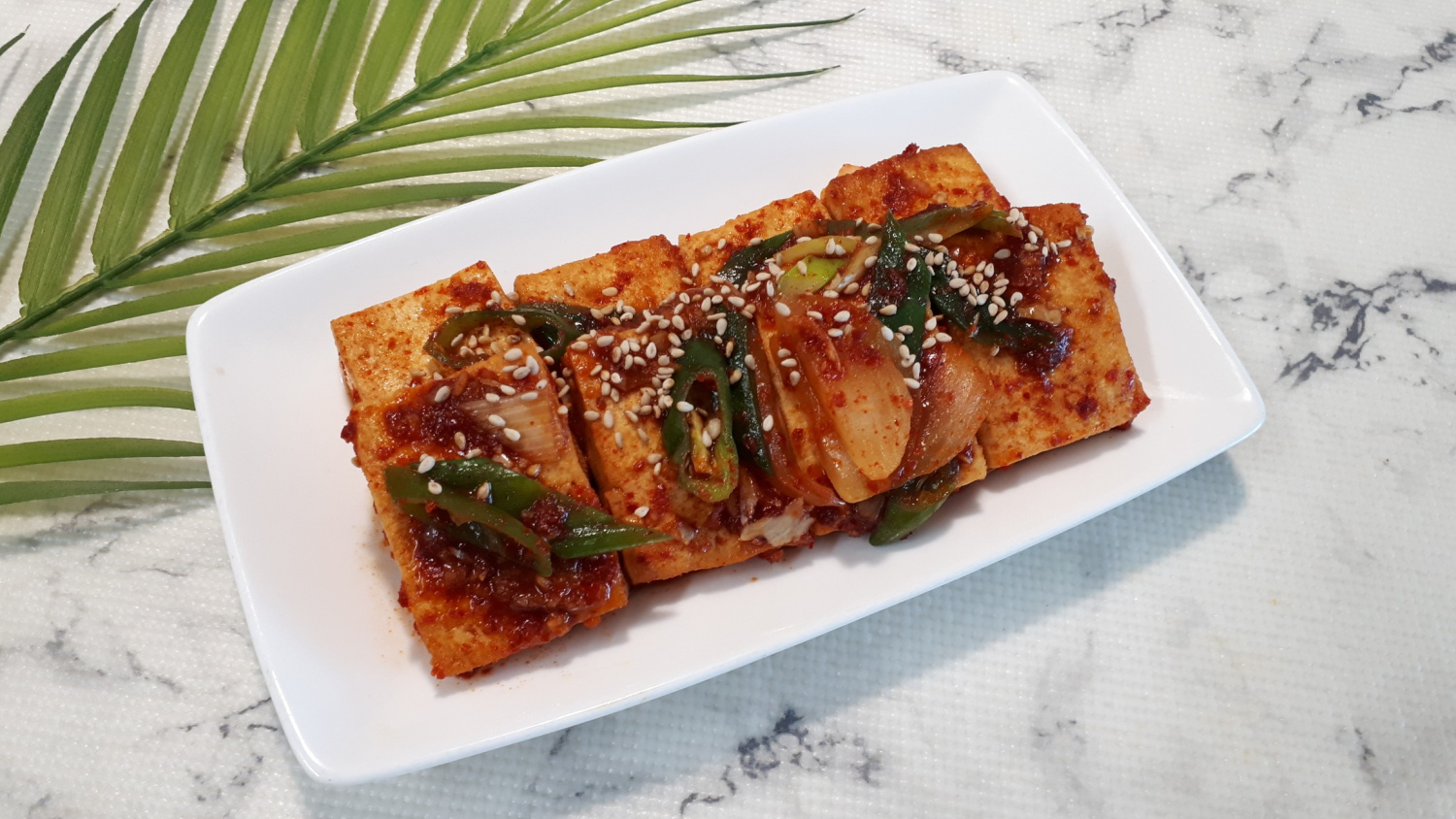 Tahu digoreng hingga keemasan dan sedikit renyah di luar, lalu dimasak dalam bumbu kecap yang gurih dan sedikit pedas. Lauk ini sangat memanjakan lidah dan cocok disantap bersama nasi putih hangat.