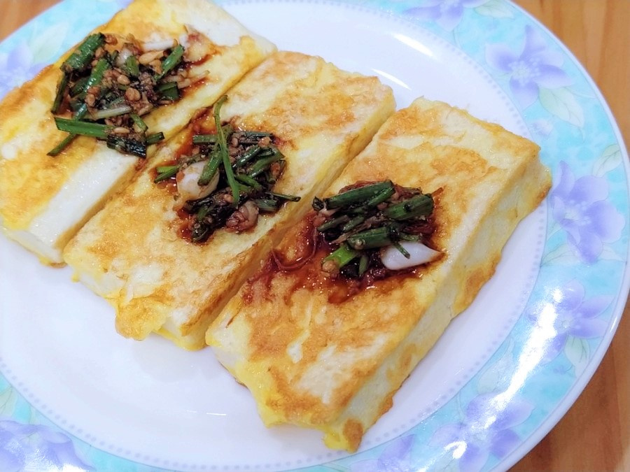 Tahu Goreng Renyah dengan Saus Daun Bawang Liar yang Aromatik