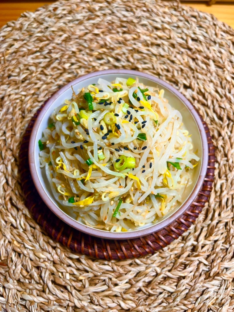 Mari kita mulai dengan langkah pertama untuk tauge goreng yang lezat! Pertama, bilas tauge hingga bersih. Saat saya mempersiapkan sertifikasi memasak Korea, saya harus memangkas ujung akar tauge dengan cermat, yang menurut saya cukup membosankan. Namun, untuk masakan rumahan, cukup membilasnya di bawah air mengalir sudah cukup untuk membuat hidangan yang lezat. Tentu saja, jika Anda lebih suka tampilan yang lebih rapi, Anda dapat memangkas rambut akar, tetapi itu sepenuhnya opsional. Cincang halus daun bawang atau daun bawang yang akan Anda campurkan.