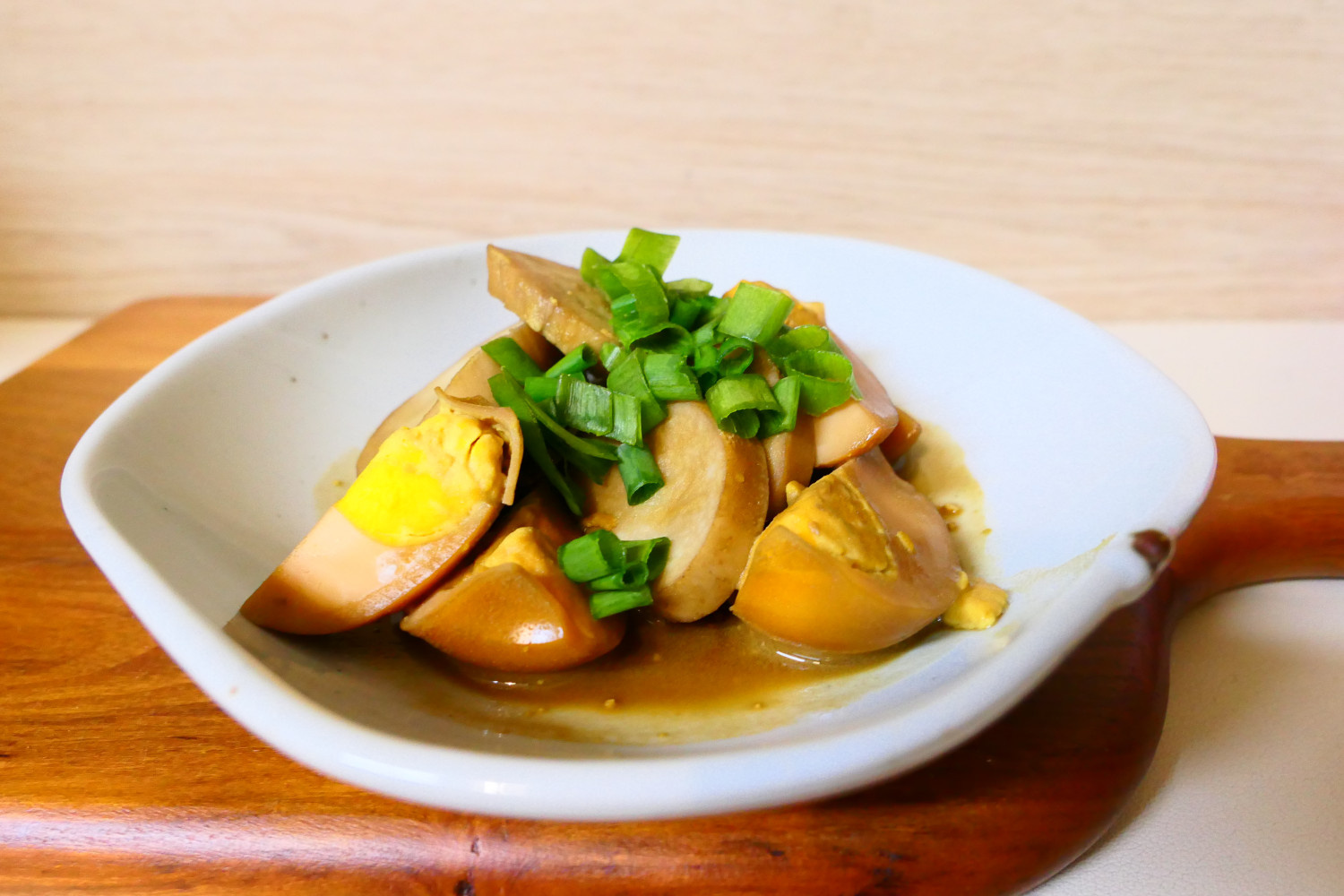 Menggunakan telur panggang siap pakai dari toko membuat resep ini semakin mudah. Kupas kulit telur panggang sepenuhnya lalu potong setiap telur menjadi 4 bagian. Tekstur telur panggang yang padat berpadu indah dengan kuah kecapnya.
