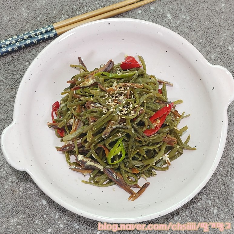 Saya melihat tumisan batang ubi jalar dengan ikan teri di acara TV ‘Sumi’s Side Dish’ dan terinspirasi untuk membuatnya dengan bahan-bahan yang saya miliki di rumah. Ternyata Anda tidak memerlukan bahan khusus atau metode memasak yang rumit untuk mendapatkan rasa yang luar biasa! Hidangan ini terasa lembut namun penuh umami, menjadikannya lauk yang sempurna untuk nasi atau hidangan utama dalam koleksi banchan (lauk pendamping) Anda. ^^