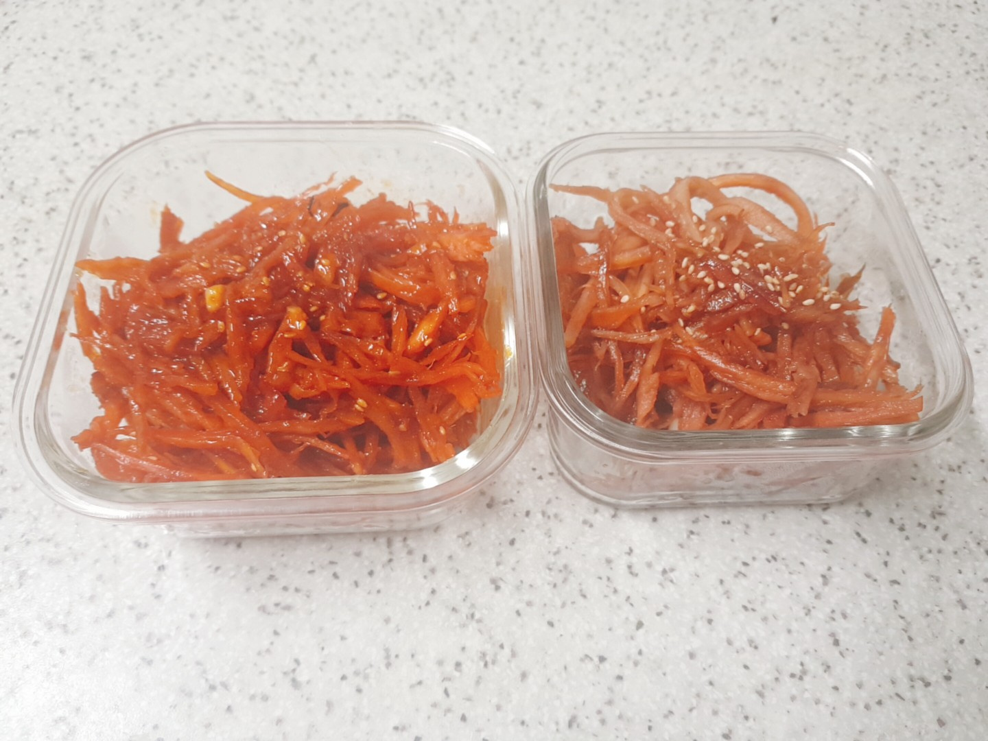 Tumis Hong Jinmichae gochujang pedas manis Anda yang lezat kini telah selesai! Nikmati kedua varian rasa tersebut.