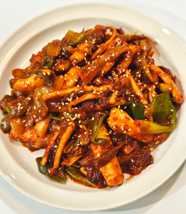 Makan malam ini, kami menikmati hidangan rumahan lezat berupa tumis cumi pedas manis dengan aroma asap yang menonjol. Resep ini menghasilkan saus yang sangat lezat sehingga sisa sausnya bisa dicampur dengan nasi untuk hidangan yang luar biasa enak, menghabiskan semangkuk nasi dalam sekejap!