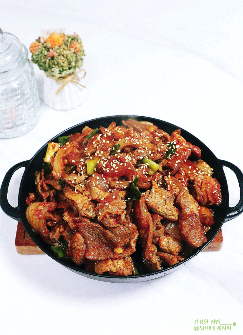 Saat selera makan sedang menurun, Jeyuk Bokkeum pedas manis adalah pilihan yang sempurna! Daging babi paha yang empuk menyerap bumbu spesial kami dengan sempurna, menjadikannya hidangan yang tak tertahankan dan sangat cocok disantap dengan nasi. Rasa fantastis yang disukai semua orang, tua dan muda. Ayo segera membuatnya!
