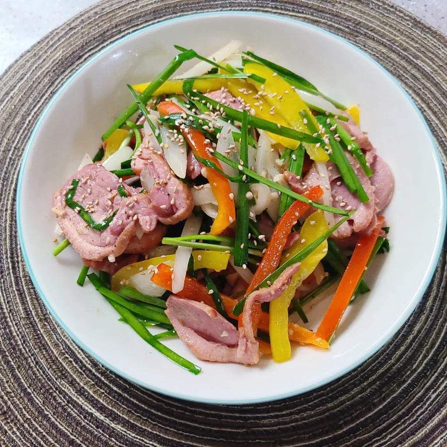 Tumis Daging Bebek Asap Lezat dengan Paprika dan Bawang