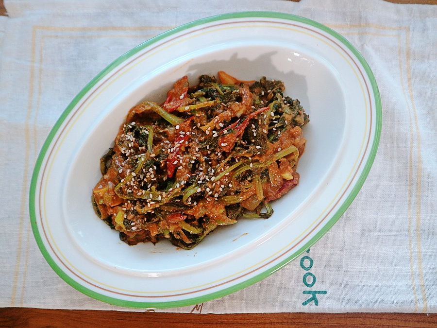 Tumis Daun Lobak dengan Doenjang (Pasta Kedelai Fermentasi) yang Gurih