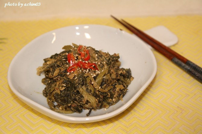 Tumis Daun Lobak Kering dengan Bubuk Perilla