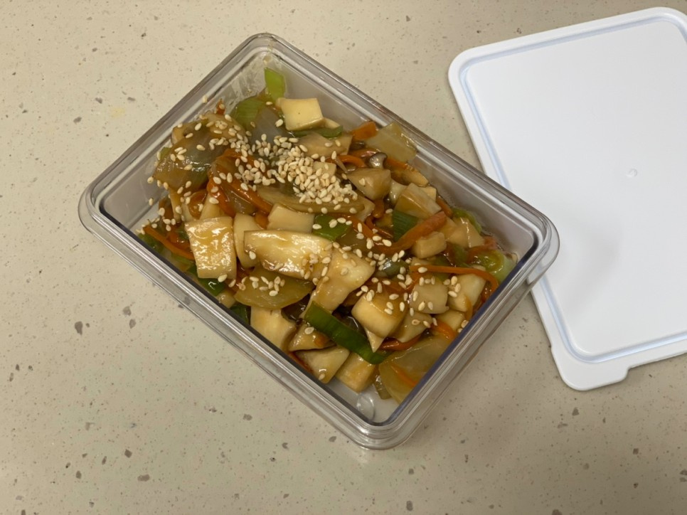 Pertama, cuci dan siapkan semua sayuran. Potong bagian bawah jamur tiram raja dan iris menjadi ukuran sekali gigit. Jika disajikan untuk anak-anak, ada baiknya memotongnya lebih kecil agar lebih mudah dimakan. Iris tipis wortel dan bawang bombay, lalu cincang halus daun bawang.