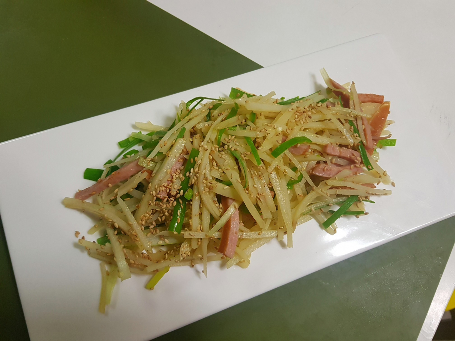 Saya melihat kentang segar di supermarket dan memutuskan untuk membuat tumisan kentang potong korek api! Tumisan kentang selalu jadi favorit, dan dengan tambahan sosis gurih serta cabai rawit pedas, hidangan ini jadi luar biasa lezat dan sama sekali tidak berminyak! Tumis kentang sosis pedas ini sempurna sebagai lauk untuk anak-anak atau sebagai camilan lezat untuk orang dewasa. Coba buat sekarang juga!