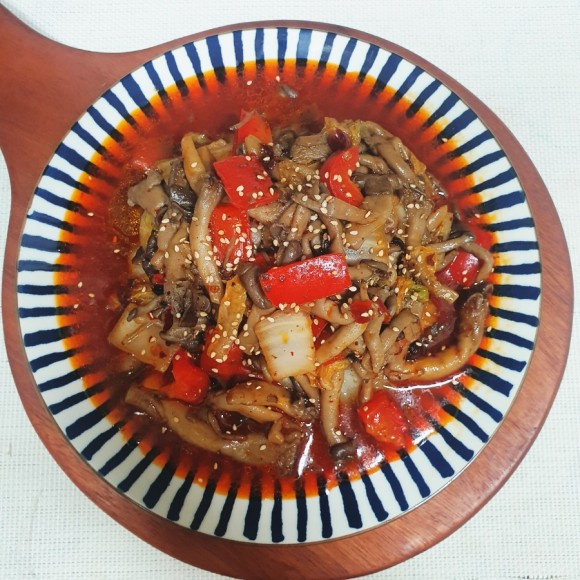 Setelah bahan-bahan setengah matang, tambahkan saus tumis mala sesuai selera Anda, lalu terus aduk cepat. Bahkan hanya dengan sayuran segar dan jamur, hidangan ini menjadi tumisan mala yang lezat, mengingatkan pada bahan-bahan untuk shabu-shabu. Ini adalah santapan yang sederhana namun memuaskan.