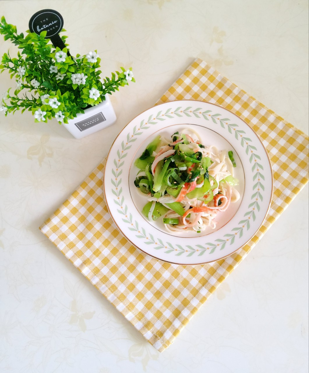 Mari kita mulai dengan Salad Pakcoy dan Stik Kepiting yang sederhana namun lezat ini!