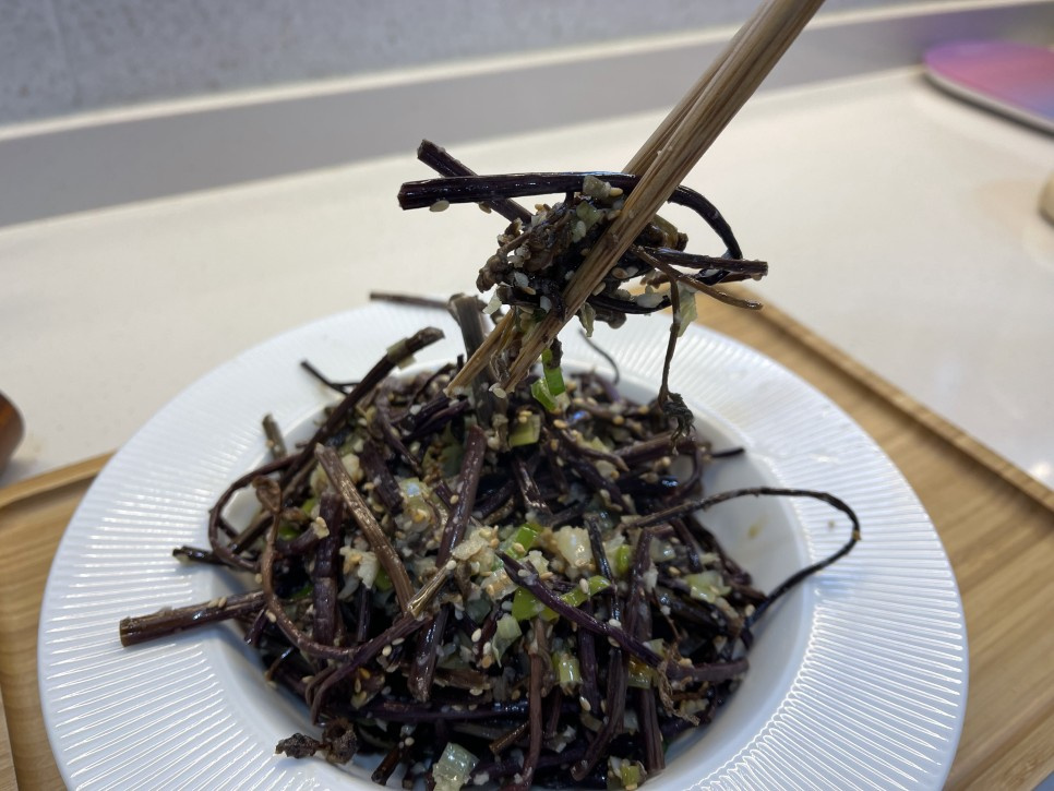 Bahan utama kita hari ini adalah pakis rebus yang dibeli dari pasar. Karena sudah direbus sebelumnya, resep ini jadi lebih cepat dan mudah! (Jika merebus sendiri, rendam pakis kering dalam air dingin, lalu rebus dalam air mendidih selama sekitar 10 menit hingga empuk.)