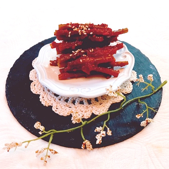 Rasakan kerenyahan yang nikmat dan rasa manis asam dari bunga bawang yang diasinkan, diubah menjadi hidangan pendamping lezat berbahan dasar gochujang. Sempurna untuk tambahan makanan yang cepat dan beraroma!
