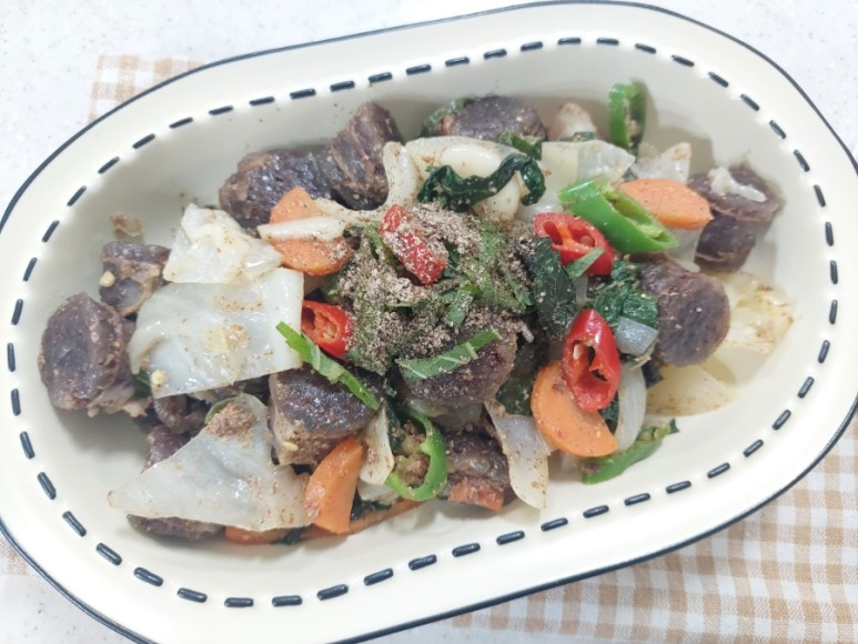Terakhir, tumis selama satu menit lagi dengan api besar, biarkan kelebihan cairan menguap. Tumis Sosis Putih Anda siap dinikmati! Nikmati aroma minyak perilla yang harum dan hidangan lezat ini.