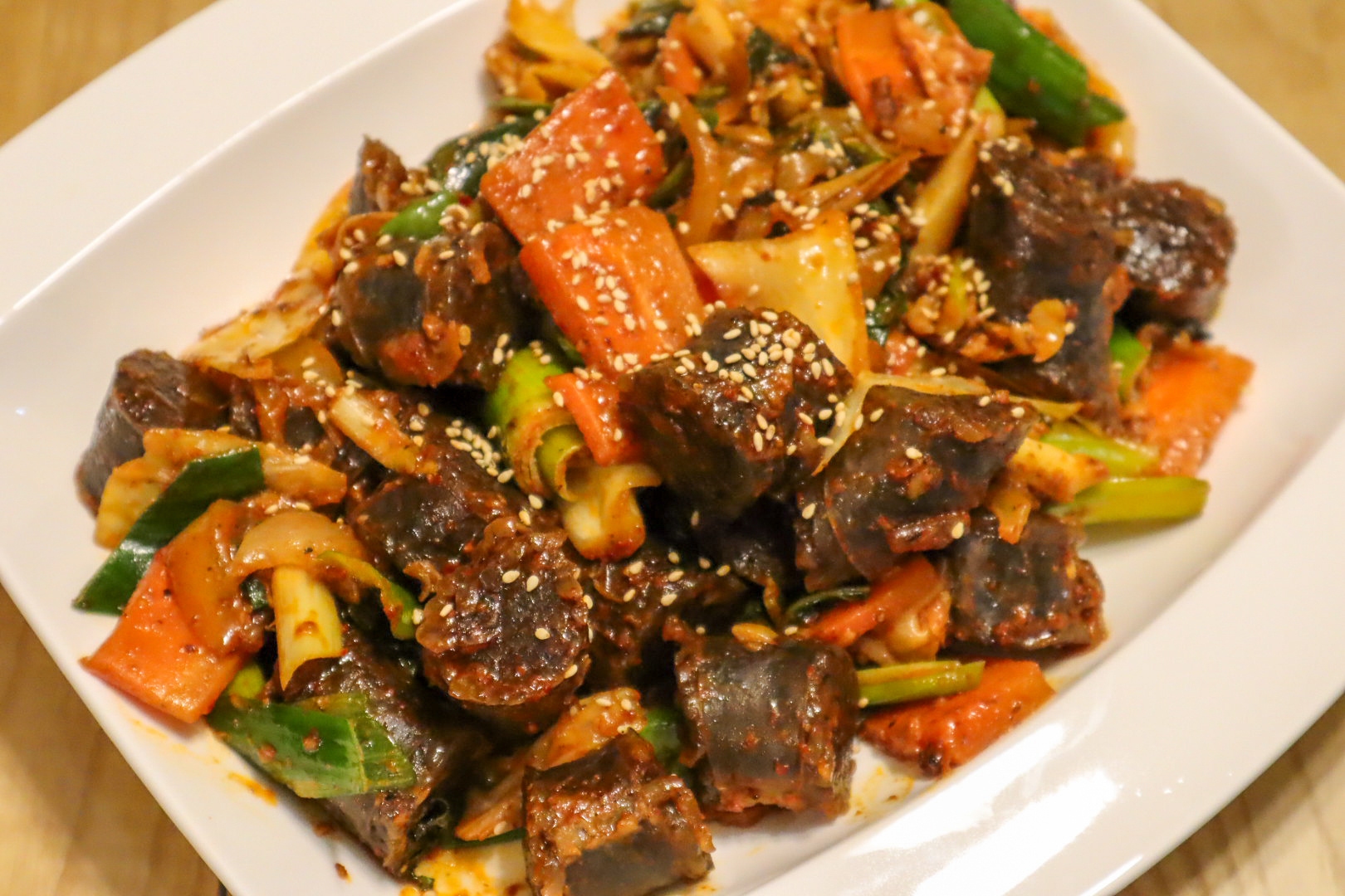 Halo semuanya! Hari ini saya membuat tumis sundae. Saya menggunakan sundae (sosis darah Korea) yang dibeli dari supermarket, dan membuat sausnya sendiri menggunakan gochujang (pasta cabai merah), gochugaru (bubuk cabai merah), dan bahan lainnya. Saya juga menambahkan sekitar 1 sendok makan bubuk biji perilla dan 1 sendok makan bubuk kari; jangan ragu untuk menghilangkannya jika Anda tidak memilikinya. Sekarang, mari kita mulai membuat tumis sundae!