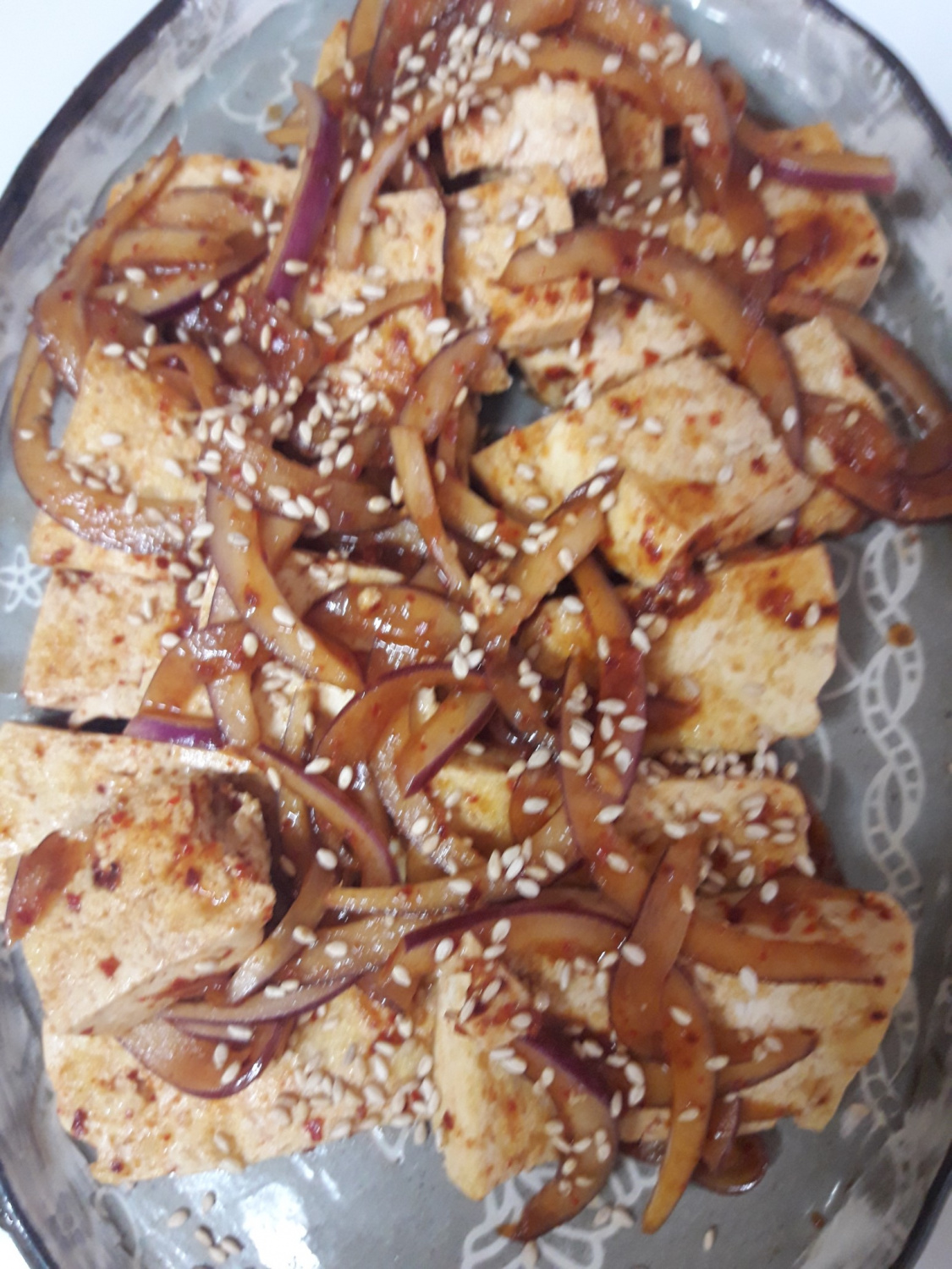 Pindahkan Tumis Tahu Bawang Bombay yang sudah tercampur rata dan lezat ke dalam piring saji, tata dengan rapi. Taburi sedikit lagi biji wijen sangrai di atasnya untuk menambah aroma dan rasa. Nikmati hidangan lezat ini bersama semangkuk nasi hangat!