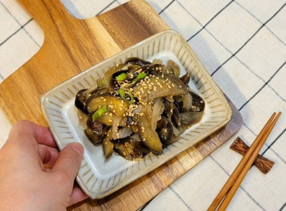 Rendam terong selama kurang lebih 10 hingga 15 menit. Setelah itu, gunakan kain bersih atau tisu dapur untuk memeras semua air dari irisan terong. Jika air masih banyak tersisa, tumisan akan menjadi lembek.
