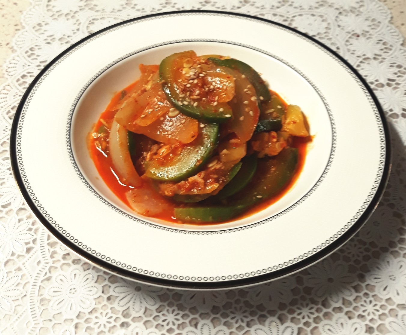 Ketika zucchini sudah empuk sesuai selera dan kuahnya sedikit menyusut, terakhir tuangkan 1 sdm minyak perilla di pinggiran wajan untuk memberikan aroma. Aroma khas minyak perilla akan meningkatkan cita rasa tumisan zucchini dan bawang bombay Anda.