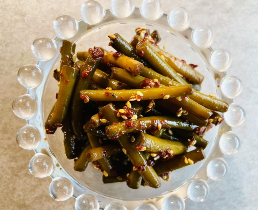 Sama seperti bangunan kokoh yang dibangun di atas fondasi yang kuat, ketika bahan utama sudah memiliki rasa yang kaya, bumbu minimal sudah cukup. Tahun lalu, saya membuat sekitar 2kg bawang putih muda yang diasamkan, mirip acar timun, dan membagikannya kepada teman-teman dan kenalan. Sisanya saya simpan di kulkas untuk dinikmati sesekali. Baru-baru ini, saya mengeluarkan sisa acar bawang putih saya. Masih segar dan bumbunya pas, enak dimakan begitu saja. Namun, kelihatannya sedikit hambar, jadi saya memutuskan untuk membumbui dengan sedikit bumbu saja: bubuk cabai, minyak wijen, dan biji wijen. Hasilnya menjadi hidangan pendamping yang lebih lezat lagi! Hampir tidak percaya betapa sederhananya itu. Saya menikmati sisa acar bawang putih tahun lalu yang tersimpan baik di kulkas saya. Dengan kimchi yang mulai terasa terlalu asam akhir-akhir ini, hidangan pendamping yang menyegarkan seperti ini sangat pas. Saya pasti akan membeli lebih banyak bawang putih muda saat musimnya tiba lagi tahun ini!