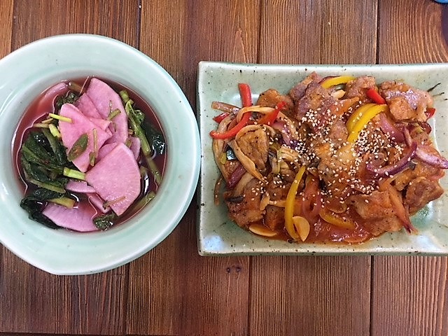 Tumisan Daging Leher Babi Saus Manis Gurih dengan Kimchi Lobak Merah yang Matang