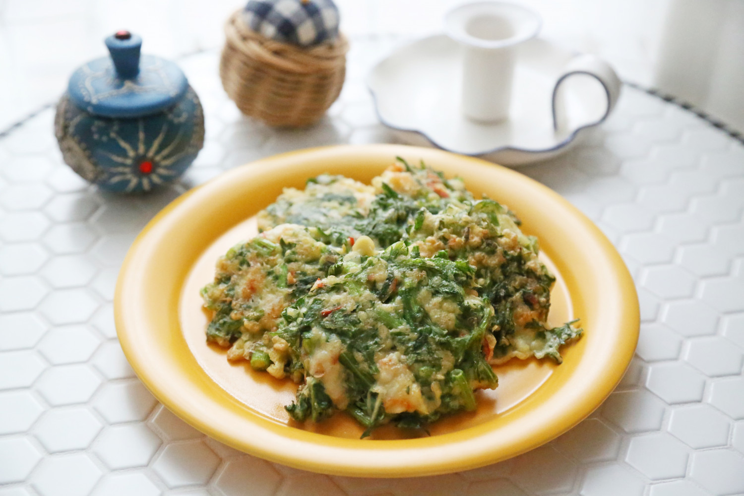 えびと春菊のチヂミ:香ばしさと食感がたまらない!簡単レシピ