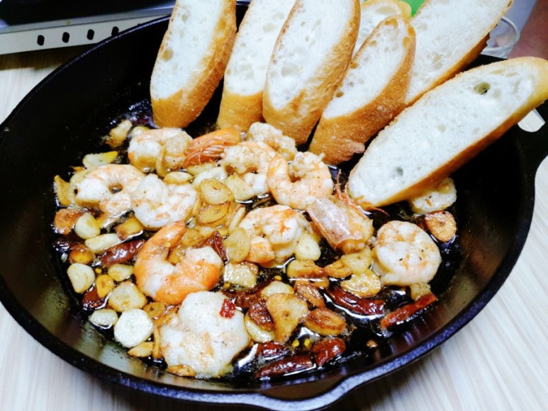 エビが完全に火を通して美味しそうなピンク色になり、ニンニクも柔らかくなったら、美味しいアヒージョの完成です!熱々のオイルとエビを、バゲットなどのパンにたっぷりつけて召し上がってください。芳醇なニンニクの香りとオリーブオイルの旨味を存分に楽しめます。ご家族で楽しめる、最高のおもてなし料理です。