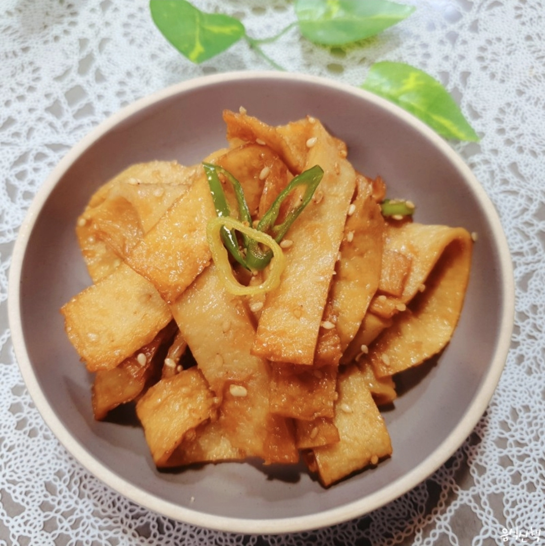 甘くてしょっぱい絶妙なバランスがたまらない、定番の韓国おかずです。柔らかいおでんに、たっぷりのタレが染み込み、ついつい手が伸びてしまう美味しさ!